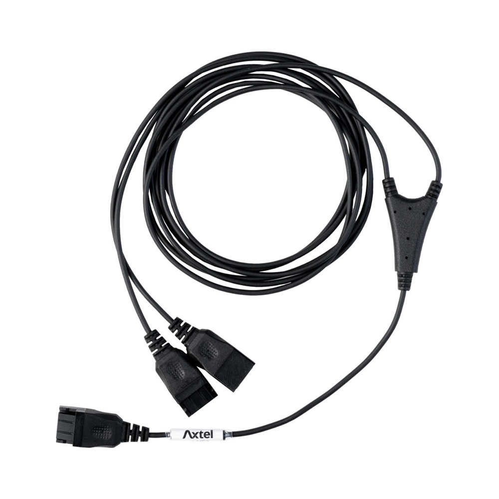 - Allows 2× Axtel headsets to be connected to a single headset adapter cable