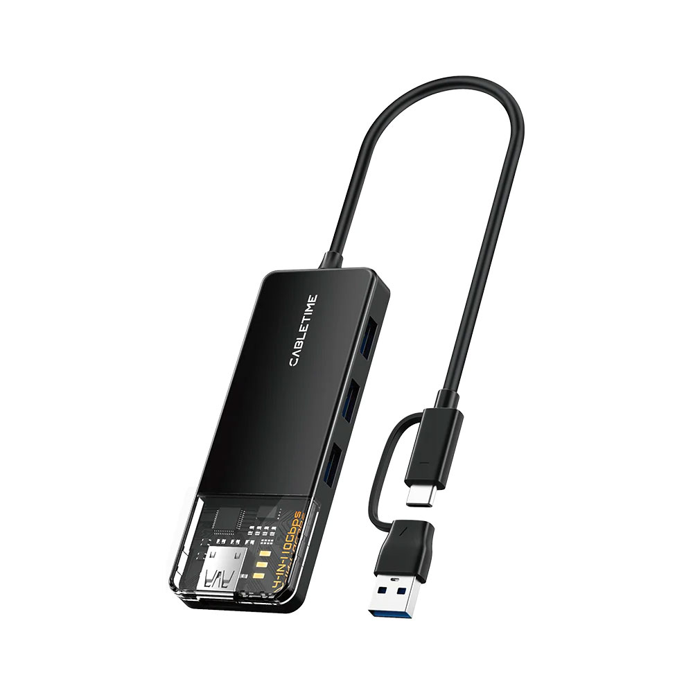 CABLETIME CB05B 20CM 4-PORT USB3.2 10GBPS HUB WITH USB TYPE-C/A ADAPTER (CT-HUBT5-PB)