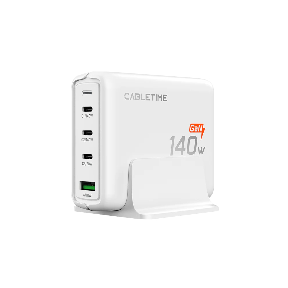 The CABLETIME G14WE 140W GAN 4-PORT USB TYPE-C/A DESKTOP CHARGING STATION (CT-GAN140-PWE) is a high-performance solution from CABLETIME, designed for professional and commercial applications. This product is built to meet rigorous industry standards, ensuring durability and seamless integration into professional environments.