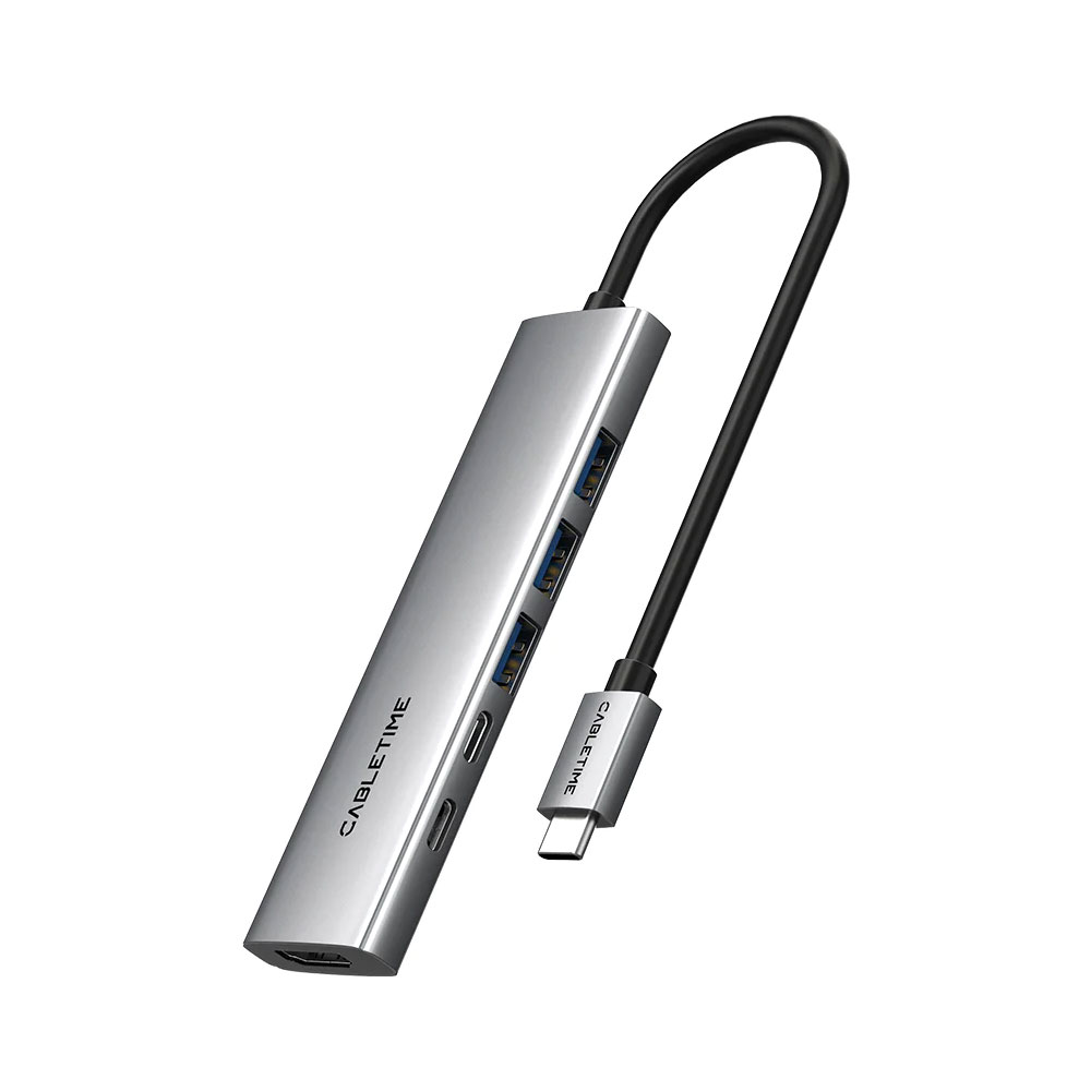CABLETIME HB01G 6-IN-1 USB TYPE-C PORT REPLICATOR WITH 100W PD AND 4K @30HZ HDMI (CT-HBP1-AG6-0.15M)