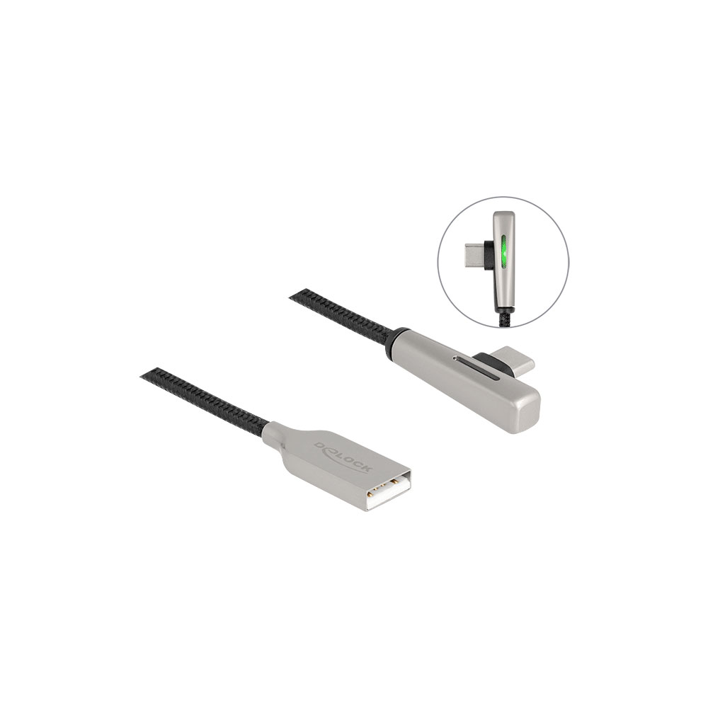 Delock 80767 2M USB2.0 TYPE-C MALE ANGLED EXTENSION CABLE WITH LED AND 60W FAST CHARGING
