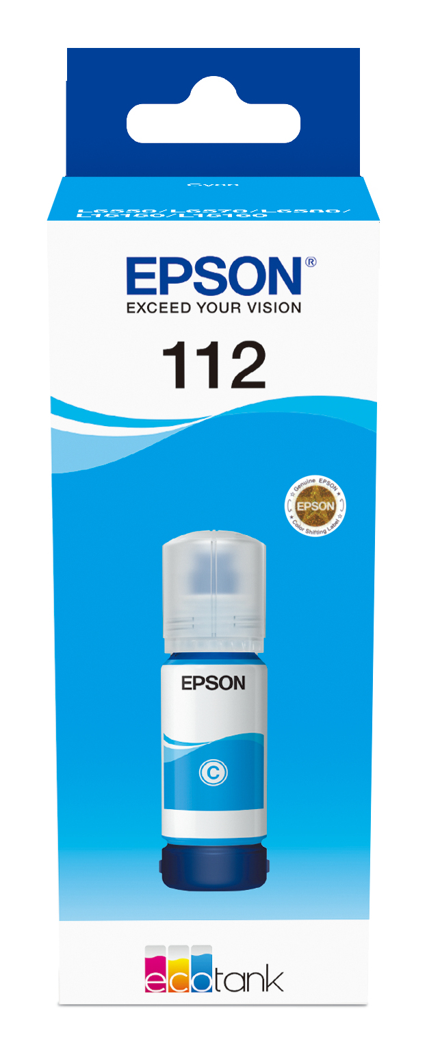 Epson EcoTank 112. Type: Original, Colour(s) of print cartridges: Pigment cyan, Brand compatibility: Epson. Quantity per pack: 1 pc(s), Package type: Box
