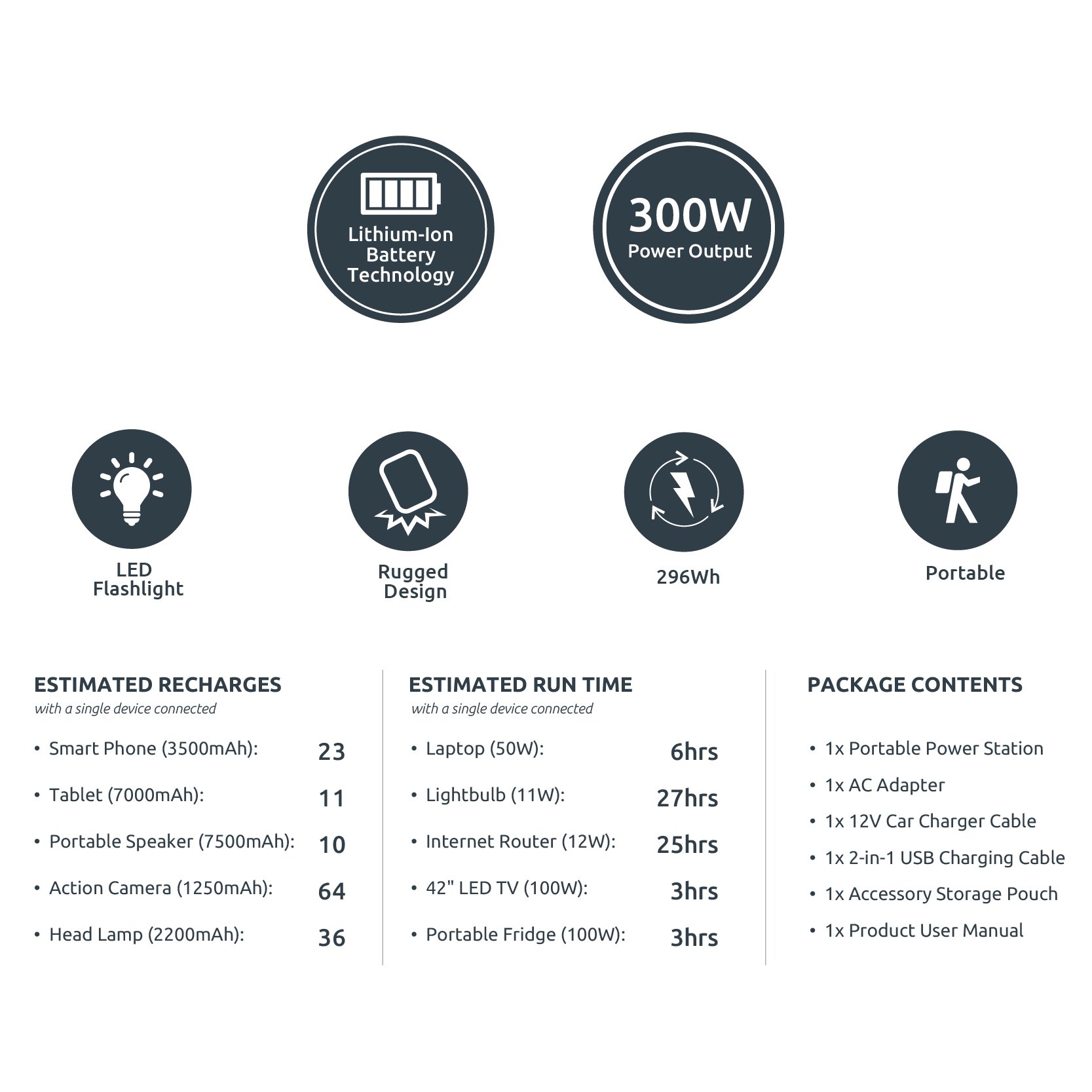 - Battery Capacity: 80000mAh / 296Wh Lithium-Ion