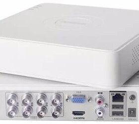 HiLook 8 Channel Hybrid High Definition Stand Alone DVR – Support H.265 Pro+/H.265 Pro/H.265/H.264+/H.264 video compression, 8 Channel Analog and HD-TVI video input, BNC interface (1.0Vp-p, 75 ?),supporting coaxitron connection, Audio Input: 1-ch RCA and 8-ch via coaxial cable Audio via coaxial cable, SATA Interface Support up to 4TB Hard disk drive, 10/100 self-adaptive Ethernet interface 2x USB 2.0 Ports on Rear panel, Supports real-time 1080p lite when enabled the image effect is similar to 1080p, HDMI/VGA output at up to 1920 ? 1080 resolution, IP 2ch Up to 10-ch IP camera input (up to 5 MP), Signal Input HDTVI/AHD/CVI/CVBS/IP, Deep learning based human and vehicle targets classification of Motion Detection 2.0, 1U Mini White Unit, Smart search for efficient playback, Remote viewing from anywhere on pc and cellphone, Retail Box , 1 year warranty