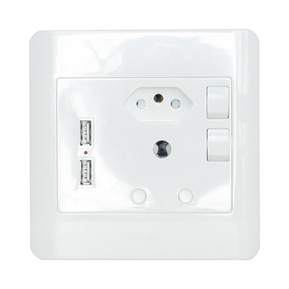 LinkQnet 1 X 16A , 1 X EURO 16A 2XUSB 2.1 WALL SOCKET-D02-1