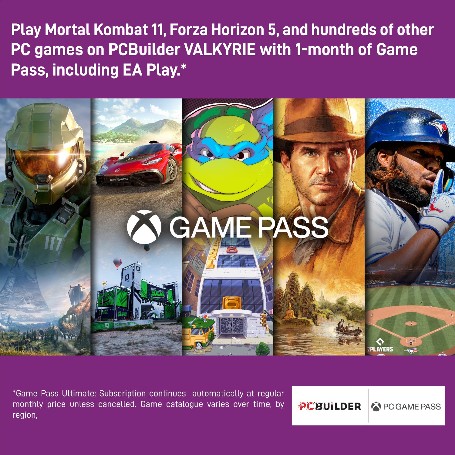 - Play over 100 high-quality PC games like Halo Infinite, Forza Horizon 5 and Teenage Mutant Ninja Turtles: Shredder?s Revenge with your new build and one month of PC Game Pass including EA Play. With new games being added all the time, there?s always something new to play from day one.?