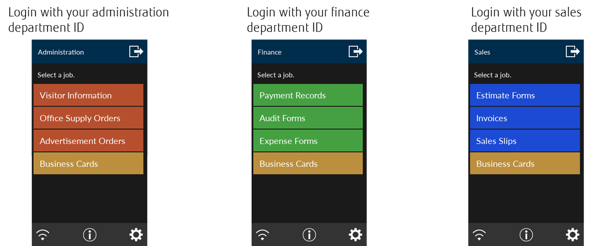 Users can scan and save documents without any requirement for a local computer, they can simply login to the scanner using user authentication and select a job from their personalized job menus on the fi-7300NX?s touch screen. Customized job menus ensure efficient and secure decentralized data entry is possible for each user.