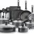 T-FAL EASY CARE 20-PIECE SET – GREY Fry pan 20cm; Fry pan 26cm; square griddle 26cm;4,7L covered jumbo cooker;4,7L covered Dutch oven; 1L covered saucepan;1,9L covered saucepan; 2,8L covered saucepan; 22 x 32 cm cookie sheet;5 nylon tools