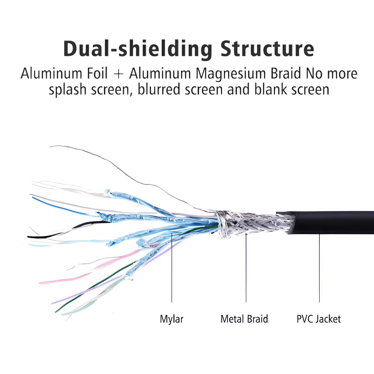 Supporting resolutions up to 4K@30Hz, the UGREEN DisplayPort to HDMI Cable provides clear visuals with vibrant colours and deep contrast. The gold-plated connectors and triple shielding minimises signal loss and interference, providing a smooth and consistent viewing experience. The integrated PS8402 chip enhances video transmission quality while ensuring compatibility with TrueHD and DTS-HD audio formats for premium sound output. This uni-directional cable is built with durability in mind, featuring a rugged PVC jacket and a secure latch-and-release mechanism that prevents accidental disconnection.