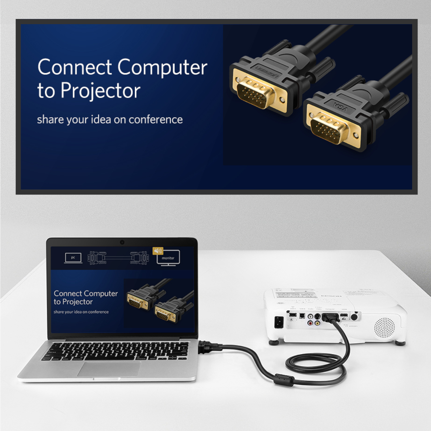 The 3-meter VGA cable length provides ample reach, allowing you to connect devices without being restricted by space. Set up your workspace or entertainment system exactly as needed, without compromising signal quality with this UGreen cable.