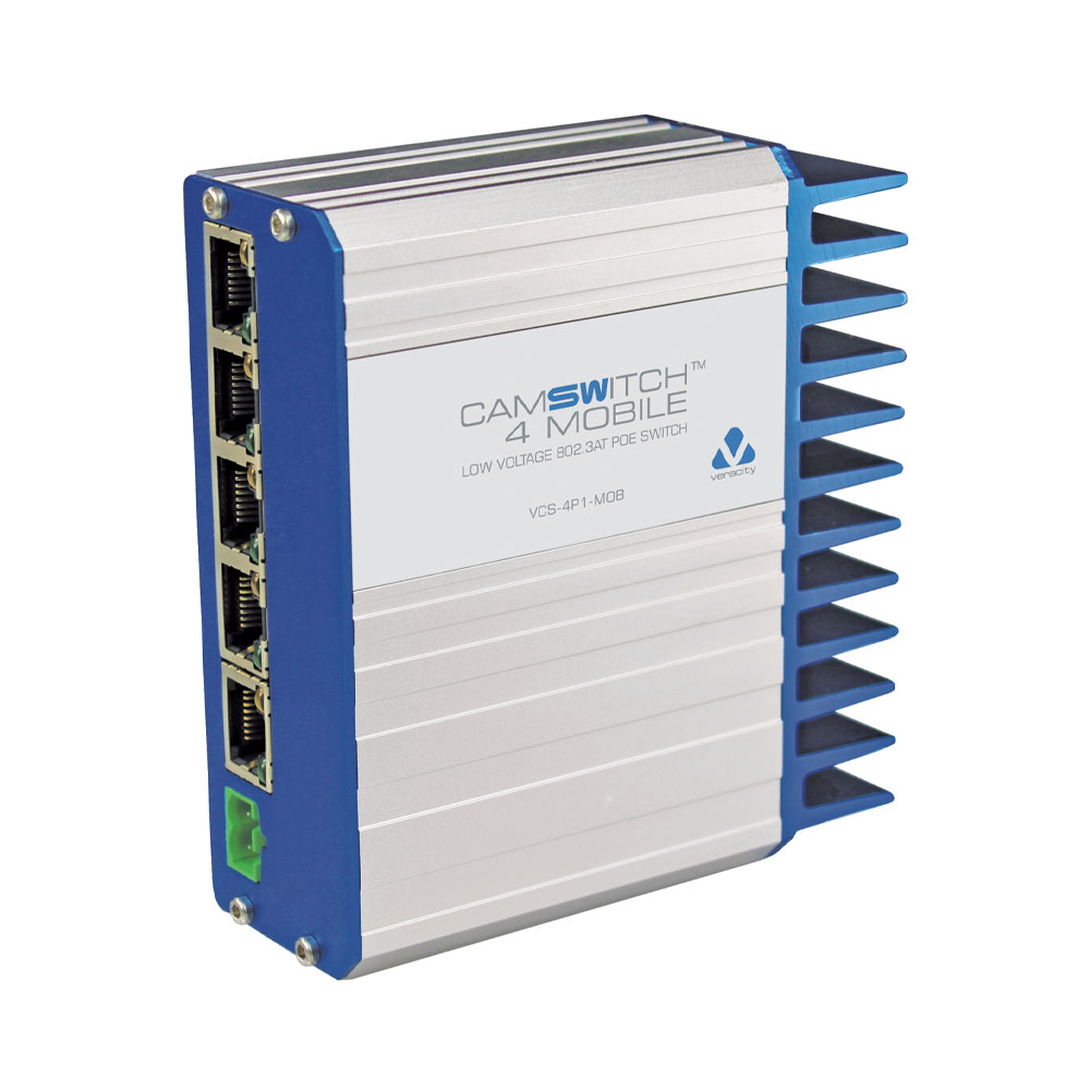 • CAMSWITCH 4 Mobile features 4 802.3at POE ports, 1 non-POE port, and a versatile DC power input